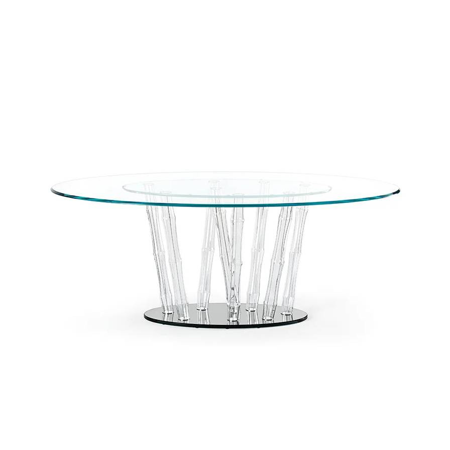 Derrière son esthétique éthérée, la Bamboo 40 cache une robustesse exceptionnelle. Chaque tube de Murano est conçu pour supporter des charges structurelles importantes, transformant le verre d'un matériau ornemental en un pilier architectural. La stabilité est assurée par une répartition géométrique précise des points d'appui, permettant au plateau de grande dimension (jusqu'à 140x140 cm) de rester parfaitement immobile. L'ergonomie de la pièce est pensée pour l'interaction : la hauteur de 40 cm est optimisée pour accompagner les canapés contemporains de haute facture, facilitant un accès fluide tout en maintenant une ligne d'horizon basse qui n'obstrue pas la vue panoramique de votre intérieur. C'est l'union parfaite entre la fragilité perçue et la solidité réelle.