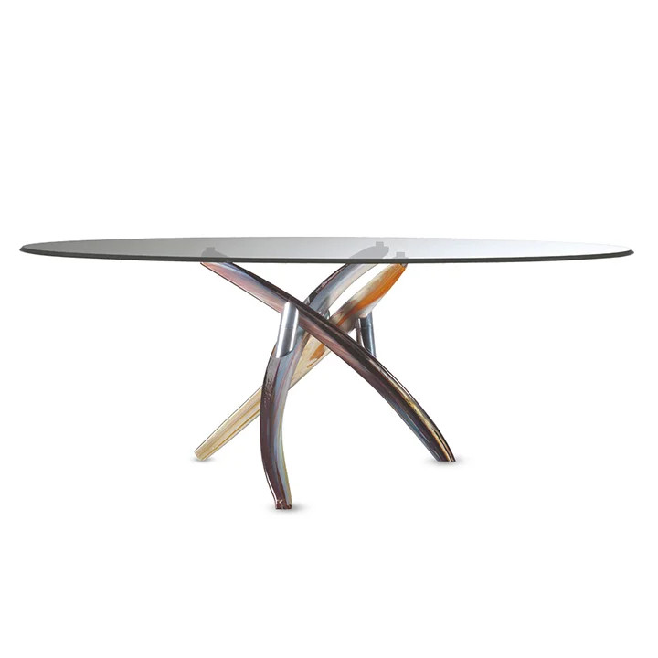La table de repas Fili D'erba 72, conçue par le prestigieux fabricant italien Reflex Angelo, transcende la simple fonction de mobilier pour s'élever au rang d'œuvre d'art totale. Imaginée par le studio Tulczinsky, cette pièce emblématique incarne la quintessence du mouvement « Néo-Baroque » contemporain. Son nom, évocateur de « brins d'herbe », n'est pas une simple métaphore : il décrit l'essence même de sa structure, où des éléments massifs semblent onduler sous l'effet d'une brise invisible. Ce contraste saisissant entre la densité des matériaux — verre de Murano soufflé à la bouche et bois noble — et la légèreté visuelle de leur disposition définit une nouvelle ère de l'élégance statutaire. Choisir une Fili D'erba 72, c'est inviter chez soi une part de l'histoire vénitienne, réinterprétée par une ingénierie de pointe qui défie les lois de la perception visuelle.