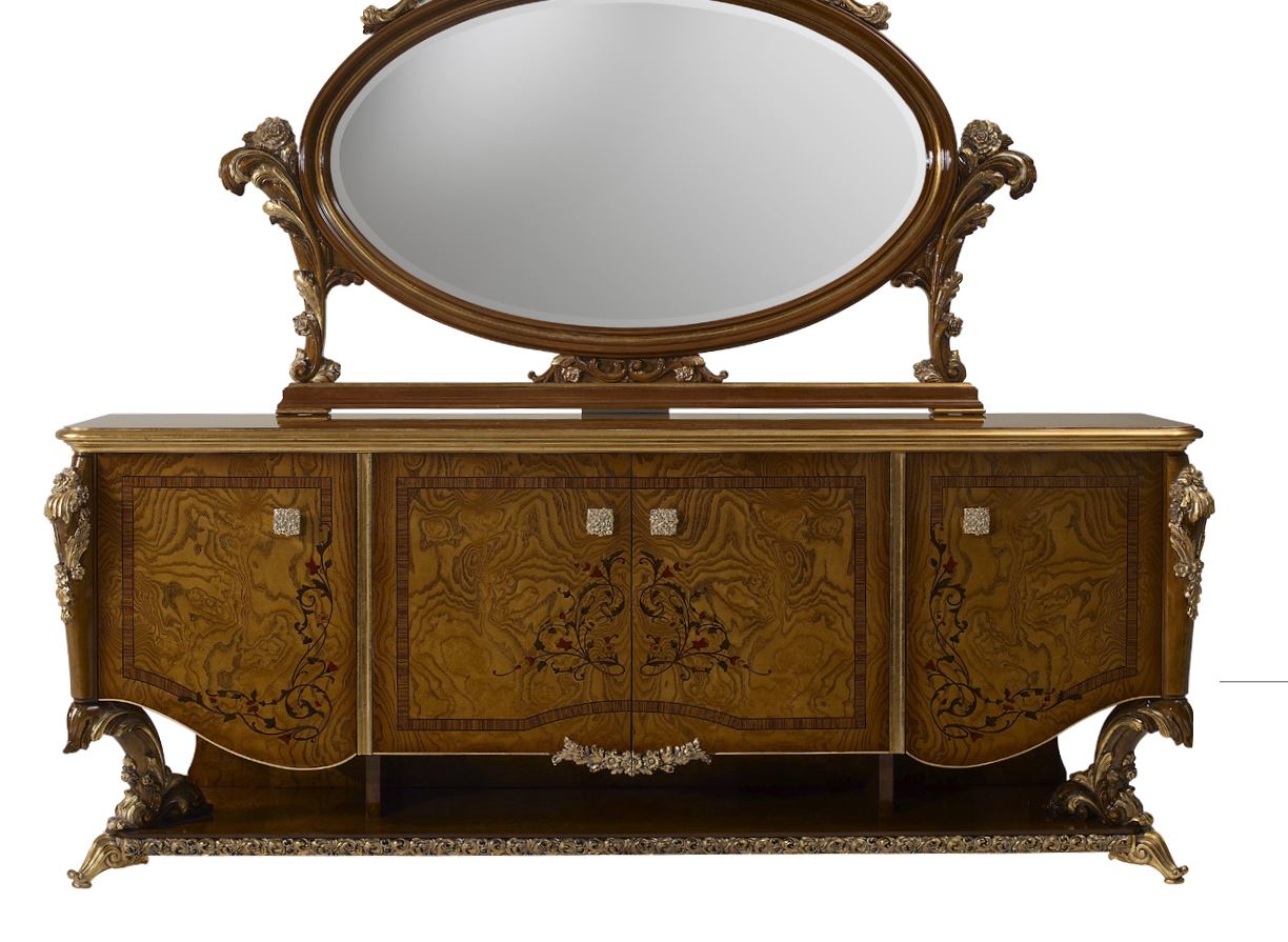 Il design del sideboard è caratterizzato da curve eleganti e intagli intricati, mostrando l'arte dei maestri artigiani. L'attenzione ai dettagli è evidente negli elementi decorativi che adornano il pezzo, rendendolo un elemento di dichiarazione che si distingue in qualsiasi cucina. L'estetica complessiva è di sofisticatezza ed eleganza senza tempo.