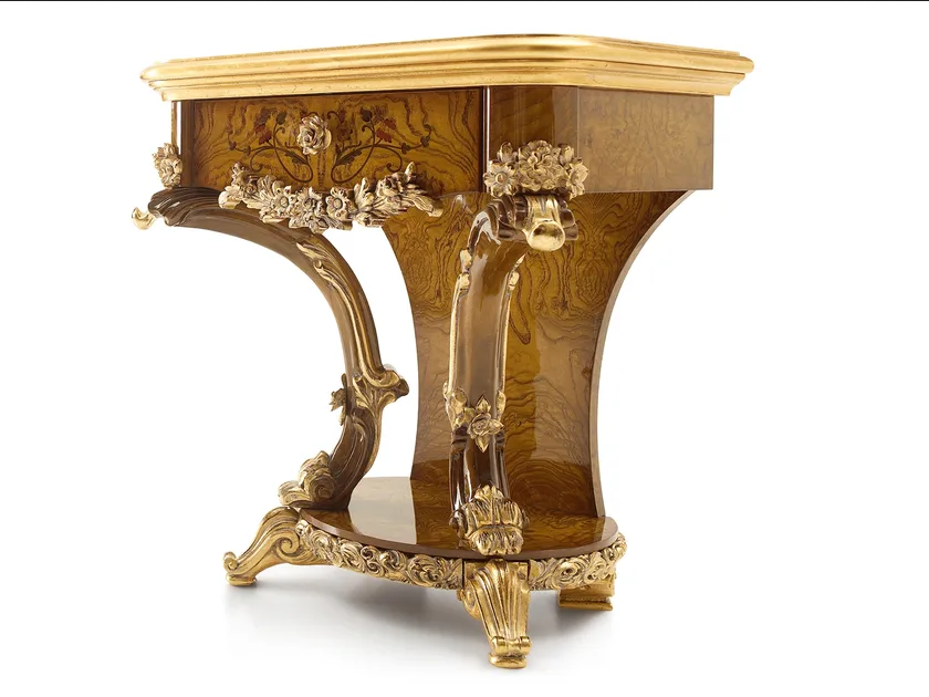 Il design del tavolino DOLCEVITA mostra un equilibrio armonioso tra forma e funzione. La silhouette rettangolare e liscia è completata dai bellissimi dettagli intagliati, che aggiungono un tocco di sofisticatezza. La cura dei dettagli, inclusi elementi decorativi e rifiniture, migliora la sua estetica complessiva. Questo tavolino non è solo un oggetto funzionale; è un pezzo di dichiarazione che eleva la decorazione della camera da letto.