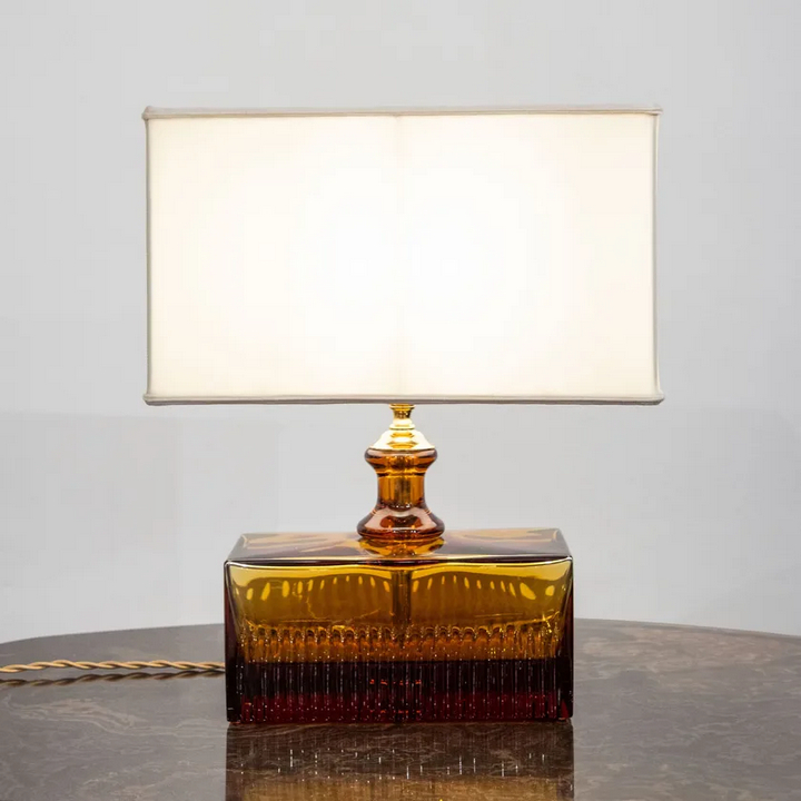 La lampada da tavolo LUISA presenta un corpo splendidamente lavorato con design intricati che evidenziano l'abilità artigianale coinvolta nella sua creazione. Le curve eleganti e le linee raffinate creano un senso di sofisticazione, mentre la trasparenza del vetro consente un gioco di luce e ombra, migliorando l'appeal estetico complessivo. Ogni dettaglio, dalla base alla schermatura, è stato meticolosamente progettato per garantire un'esperienza visiva straordinaria.