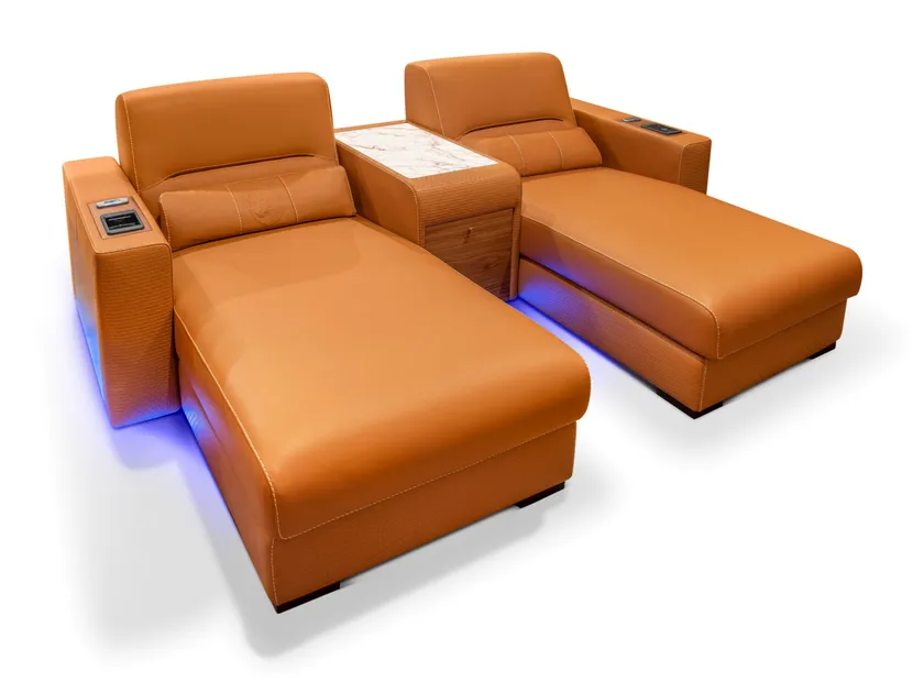Le caratteristiche funzionali del DUSTIN Home Cinema Day Bed includono avanzate soluzioni di stoccaggio, come portabicchieri integrati e scomparti nascosti per una maggiore comodità. Il meccanismo reclinabile elettrico consente una facile regolazione della posizione di seduta, garantendo un comfort ottimale per gli utenti di tutte le preferenze.