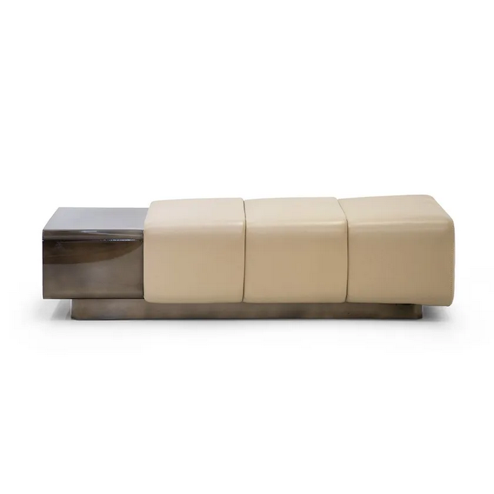 Abbracciando un'estetica moderna, il pouf CIGAR presenta un'unica combinazione di elementi di design contemporaneo. Le sue linee pulite e la forma minimalista lo rendono adatto a una gamma di interni, da appartamenti urbani a case eleganti. La combinazione di pelle e metallo crea un contrasto visivo sorprendente che mette in evidenza la sofisticazione del design moderno pur garantendo un fascino senza tempo.