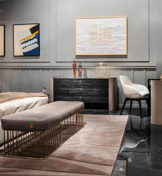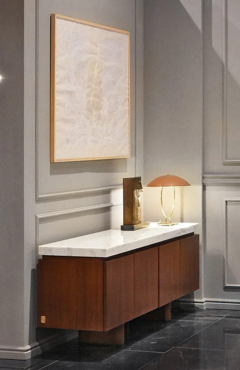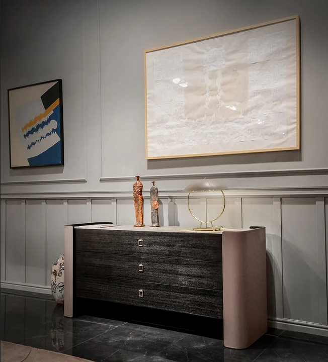 Il design della Lampada da Tavolo in Pelle è contraddistinto dalla sua silhouette elegante e dai dettagli ben pensati. Le curve morbide della campana e la base minimalista riflettono una sensibilità moderna, mentre la pelle testurizzata aggiunge un ulteriore livello di sofisticazione. Ogni dettaglio, dalla cucitura sulla pelle alla finitura del metallo, è realizzato con precisione, assicurando che questa lampada non sia solo funzionale ma anche un'opera d'arte.