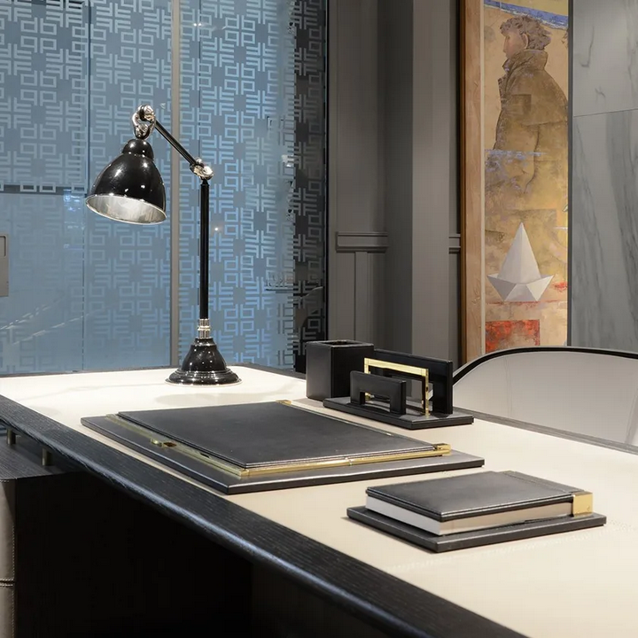 Nero, Oro e Bianco, che le permettono di integrarsi perfettamente in qualsiasi interno contemporaneo. Ideale per accentuare scrivanie, tavolini o angoli lettura, questa lampada combina praticità e stile, rendendola un accessorio indispensabile per spazi abitativi moderni.