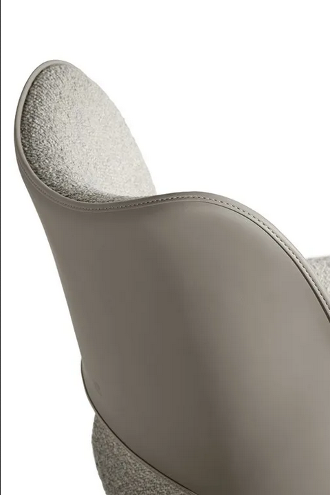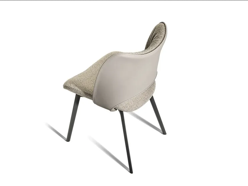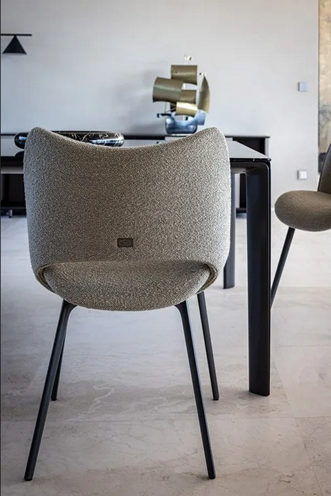 Il design della Sedia in Tessuto Imbottito NICE è caratterizzato dalla sua estetica invitante e accogliente. Lo schienale e il guscio si sovrappongono come fogli piegati, creando un vuoto intrigante che funge da caratteristica distintiva. La sensualità della morbidezza del rivestimento aggiunge all'appeal generale, mentre la silhouette robusta fornisce una sensazione di stabilità e presenza. L'attenzione ai dettagli è evidente nelle cuciture e nelle finiture, evidenziando la qualità premium e l'artigianato del designer.