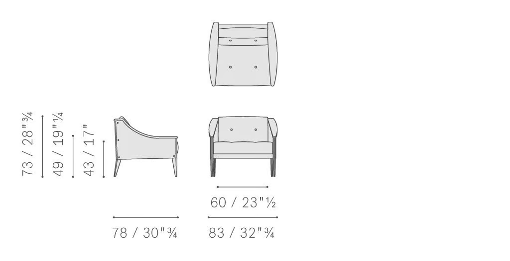 La poltrona DEZZA 24 è disponibile in una dimensione standard che si adatta comodamente agli spazi abitativi moderni. Le sue proporzioni sono progettate meticolosamente per fornire un comfort ottimale nella seduta, rendendola adatta a varie applicazioni, dall'uso residenziale a quello commerciale. L'equilibrio tra dimensioni e comfort garantisce che soddisfi gli standard contemporanei mentre migliora il design complessivo di qualsiasi stanza.