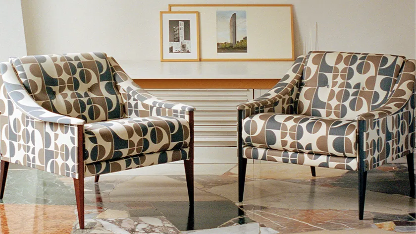 La poltrona in tessuto con braccioli DEZZA 24 di POLTRONA FRAU è un pezzo straordinario che fonde senza sforzo eleganza senza tempo con funzionalità moderna. Progettata dall'iconico Gio Ponti nel 1965, questa poltrona presenta un design unico con gambe triangolari affusolate e un sistema di assemblaggio modulare, offrendo versatilità e comfort. La sua estetica raffinata e le caratteristiche ergonomiche la rendono un'aggiunta ideale sia per spazi residenziali che commerciali, migliorando qualsiasi interno moderno con la sua presenza elegante.