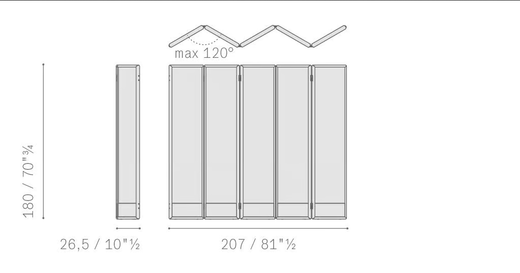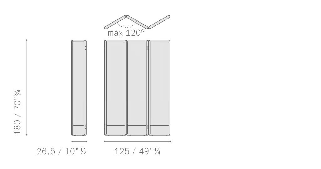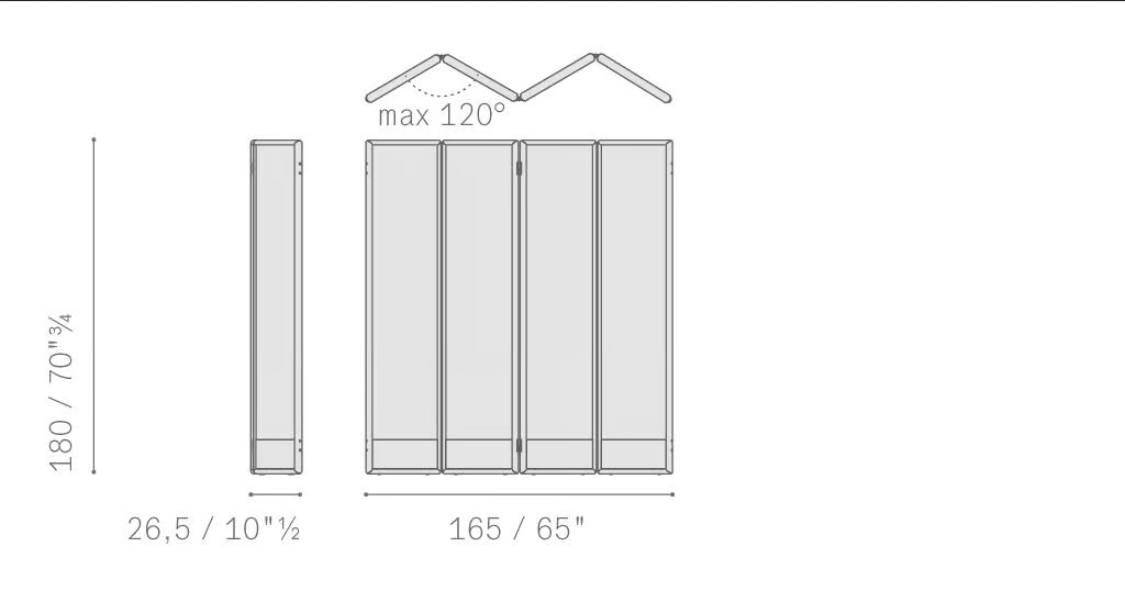 Il Fabric Screen DUO è disponibile in più configurazioni, con opzioni per 3, 4 o 5 moduli. Ogni modulo ha un'altezza di 180 cm, fornendo una copertura adeguata per la privacy o la divisione degli spazi. Il design flessibile consente di adattarsi a diverse dimensioni e layout delle stanze, garantendo la massima funzionalità e stile per gli interni moderni.
