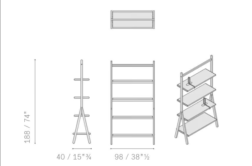La libreria è progettata per essere fissata in modo sicuro al muro utilizzando ganci in metallo, garantendo stabilità e sicurezza. La sua costruzione consente un facile montaggio e smontaggio, rendendola una scelta pratica per vari contesti. Il design innovativo presenta un'altezza regolabile in base alla variante scelta, soddisfacendo diverse esigenze spaziali e preferenze.
