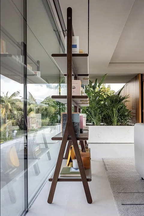 La libreria incarna uno stile moderno, fondendo perfettamente elementi di design tradizionali e contemporanei. Le sue linee pulite e l'estetica minimalista creano un effetto visivo impressionante, rendendola un punto focale in qualsiasi stanza. Ispirato al simbolo cinese 'ren', il design riflette un concetto orientale di spazio e equilibrio, fornendo un'atmosfera accogliente che incoraggia il relax e la contemplazione.