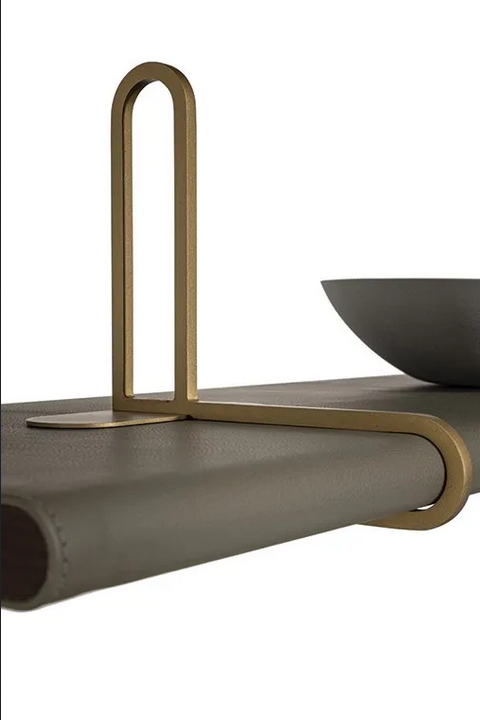 L'attenzione ai dettagli è evidente nel design della libreria, dalle curve eleganti dei montanti alla raffinata pelle di cavallo dei ripiani. L'interazione di materiali e texture crea un pezzo visivamente accattivante che si distingue. Elementi decorativi, come i fermalibri in acciaio spazzolato con finitura in ottone naturale, migliorano la sua estetica complessiva, aggiungendo un tocco sofisticato alla funzionalità della libreria.