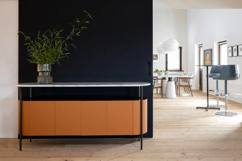 Il Sideboard integra soluzioni tecnologiche avanzate, come l'uso di vetro temperato che migliora la visibilità pur essendo robusto. Il design include soluzioni di stoccaggio innovative che consentono una facile organizzazione e accessibilità degli oggetti, promuovendo un ambiente privo di ingombri. La combinazione di appeal estetico e funzionalità pratica dimostra l'impegno di Poltrona Frau per l'innovazione nel design dei mobili.