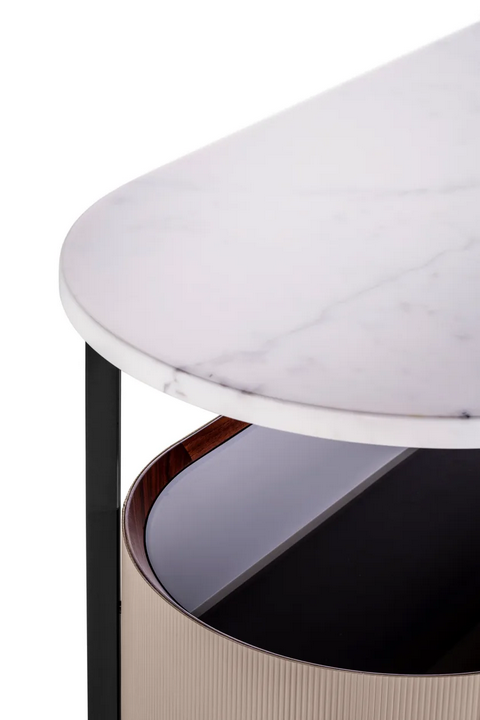 Le unità di storage Mi sono progettate con specifiche tecniche ben pensate, come piedi regolabili che forniscono stabilità su superfici irregolari. La superficie superiore, disponibile in marmo, è sollevata dal corpo in legno, esaltando la sua eleganza mentre offre ulteriore spazio espositivo. L'uso di vetro temperato non solo aggiunge sofisticazione, ma garantisce anche durabilità e sicurezza. La combinazione di materiali e tecniche di costruzione risulta in un pezzo sia bello che funzionale.