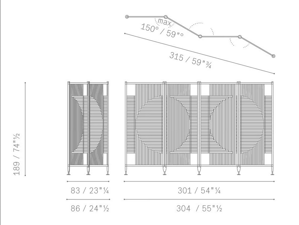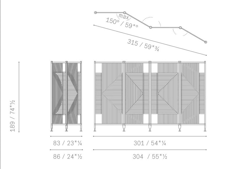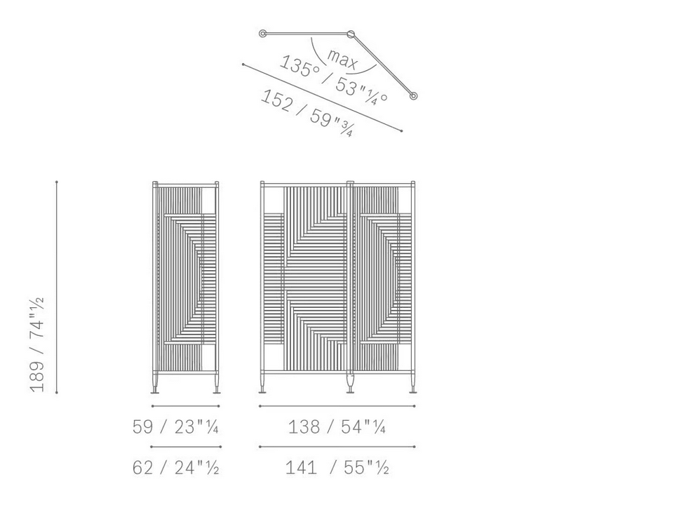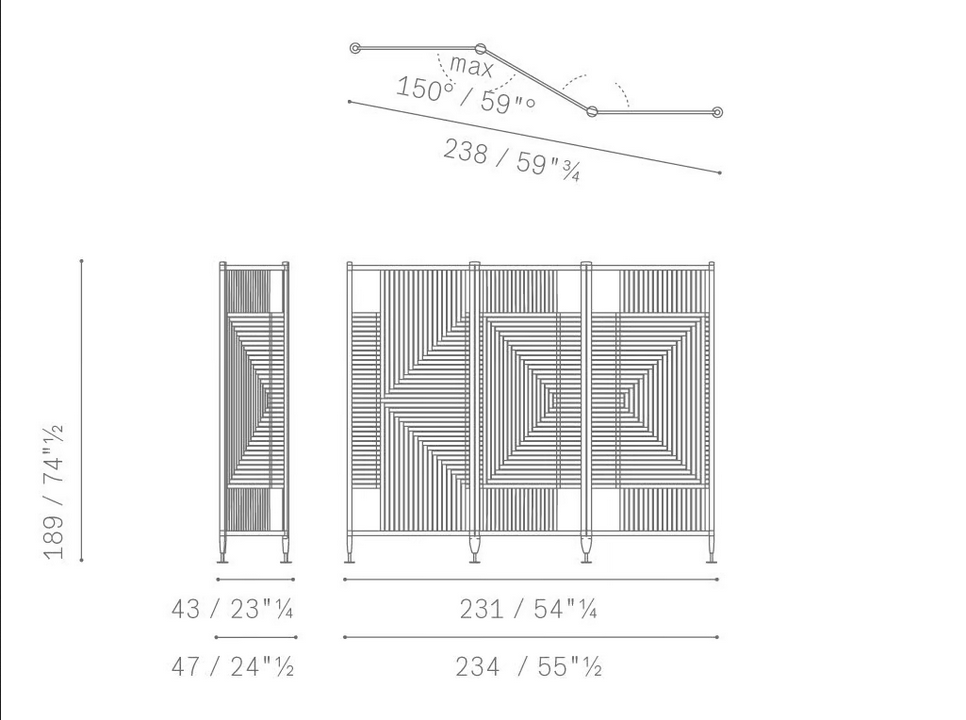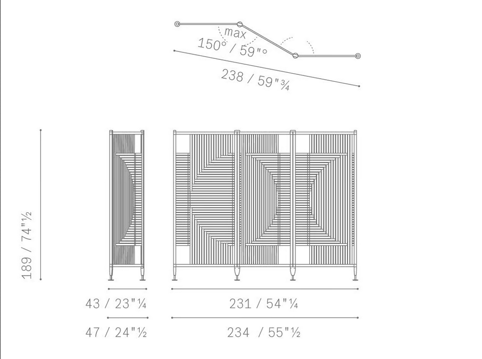 La natura modulare del divisorio PLOT offre un'eccezionale versatilità, permettendo di configurarlo in due, tre o quattro moduli. Questa adattabilità lo rende adatto a vari spazi, offrendo l'opzione di creare aree separate o aprire una stanza secondo necessità. Il design intelligente include giunti e supporti metallici integrati, garantendo stabilità mantenendo un aspetto elegante. Il divisorio funge sia da elemento decorativo che funzionale, migliorando l'usabilità del tuo spazio.