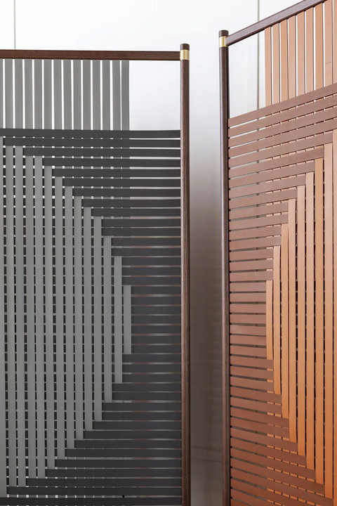 Questo divisorio per stanze incarna un'estetica moderna, mescolando l'artigianato tradizionale con elementi di design contemporaneo. L'approccio minimalista mette in risalto linee pulite e forme geometriche, creando un impatto visivo straordinario. Il divisorio PLOT funge sia da pezzo funzionale che da installazione artistica, elevando l'atmosfera generale di qualsiasi ambiente mantenendo un senso di sofisticazione ed eleganza.