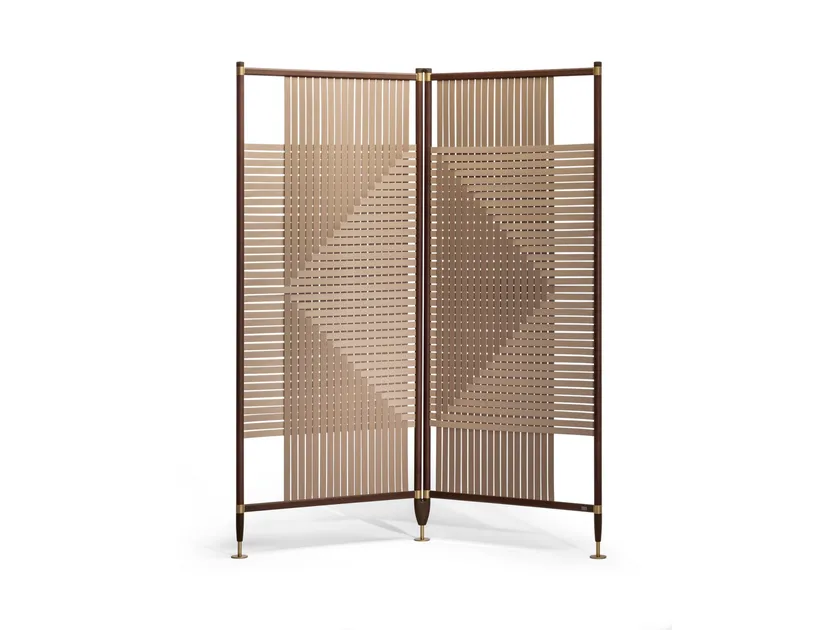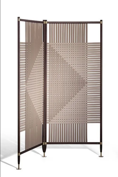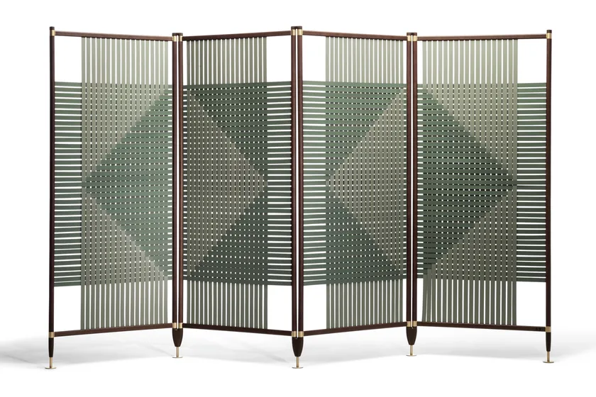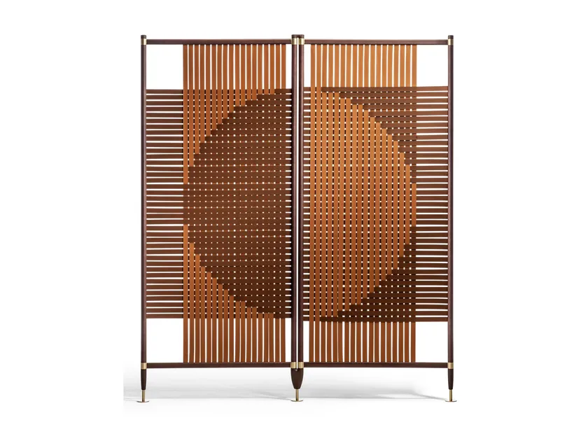 Il design del paravento in pelle PLOT presenta un attento gioco di forme e texture, con un'enfasi su motivi geometrici che catturano visivamente. La pelle intrecciata aggiunge profondità e interesse, mentre la struttura in alluminio elegante assicura durata senza compromettere lo stile. L'attenzione ai dettagli è fondamentale, con elementi decorativi e finiture che migliorano l'estetica complessiva, rendendolo un pezzo distintivo in qualsiasi stanza.