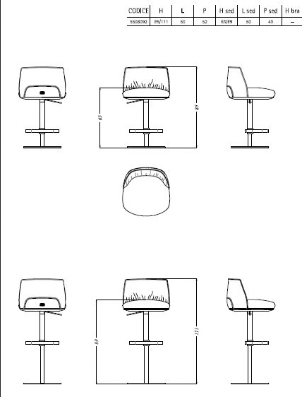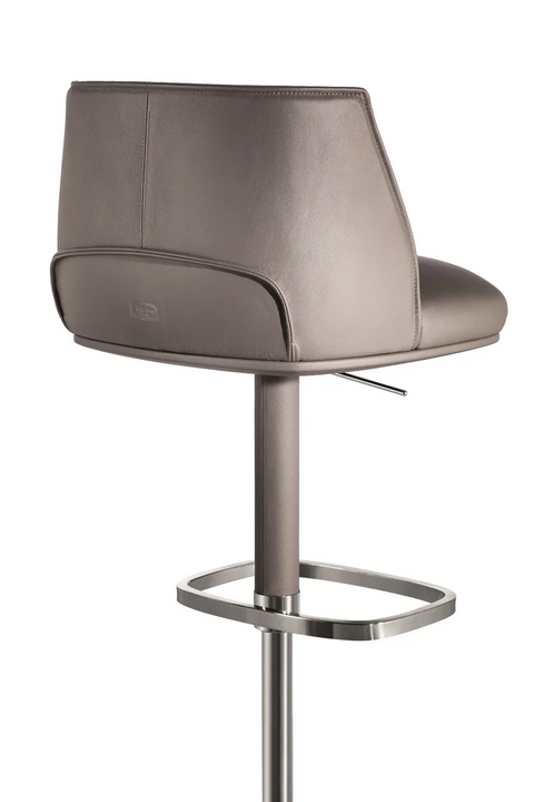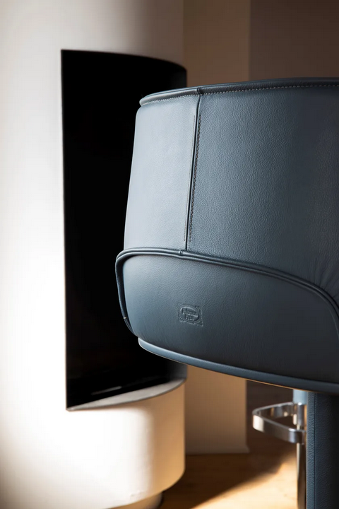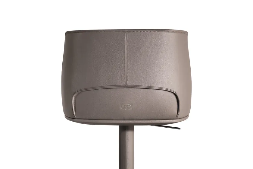 Lo sgabello in pelle alta presenta un design ben studiato, enfatizzando sia l'estetica che il comfort. Il sedile curvo è invitante, mentre il distintivo poggiapiedi aggiunge un tocco elegante. La caratteristica di regolazione in altezza, azionata da un meccanismo a gas, è discretamente integrata, mantenendo l'aspetto elegante dello sgabello. L'attenzione ai dettagli è evidente nella scelta dei materiali e nelle finiture che migliorano l'estetica complessiva.