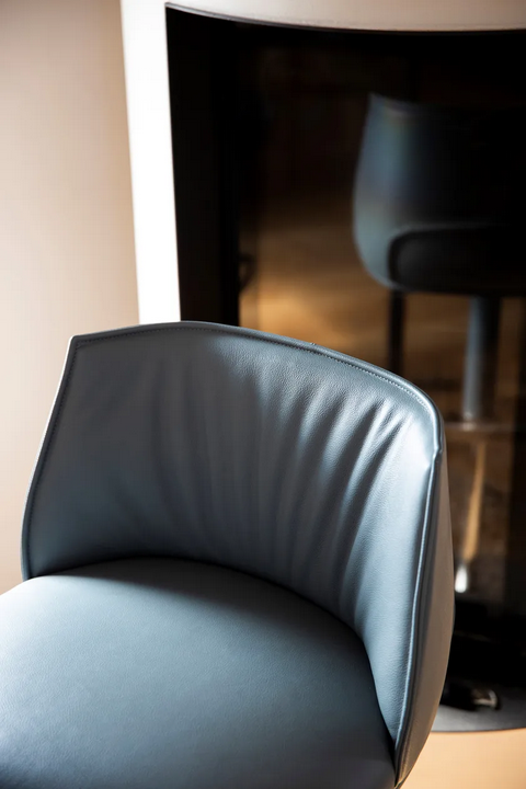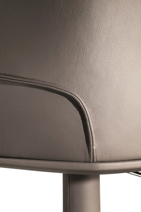 lo sgabello alto in pelle imbottita incorpora soluzioni innovative come il meccanismo a molla a gas per la regolazione dell'altezza, assicurando facilità d'uso e comfort. L'imbottitura è progettata per essere sia lussuosa che durevole, con proprietà antibatteriche e facili da pulire, rendendola adatta per aree ad alto traffico in case e ambienti di ospitalità.