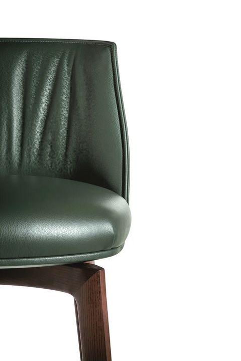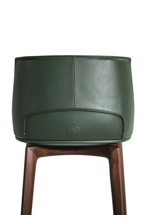 realizzato con materiali di alta qualità, questo sgabello presenta una robusta struttura in compensato di betulla e uno schienale in poliuretano modellato per garantire durata. La seduta è rivestita in pelle Pelle Frau® o tessuto, offrendo una sensazione di lusso. La base in legno, disponibile nelle finiture Moka o Wenge, è completata da un poggiapiedi in acciaio inox lucidato a specchio, assicurando una finitura raffinata. Tutti i materiali sono ecologici e provengono in conformità con gli standard internazionali di sostenibilità.