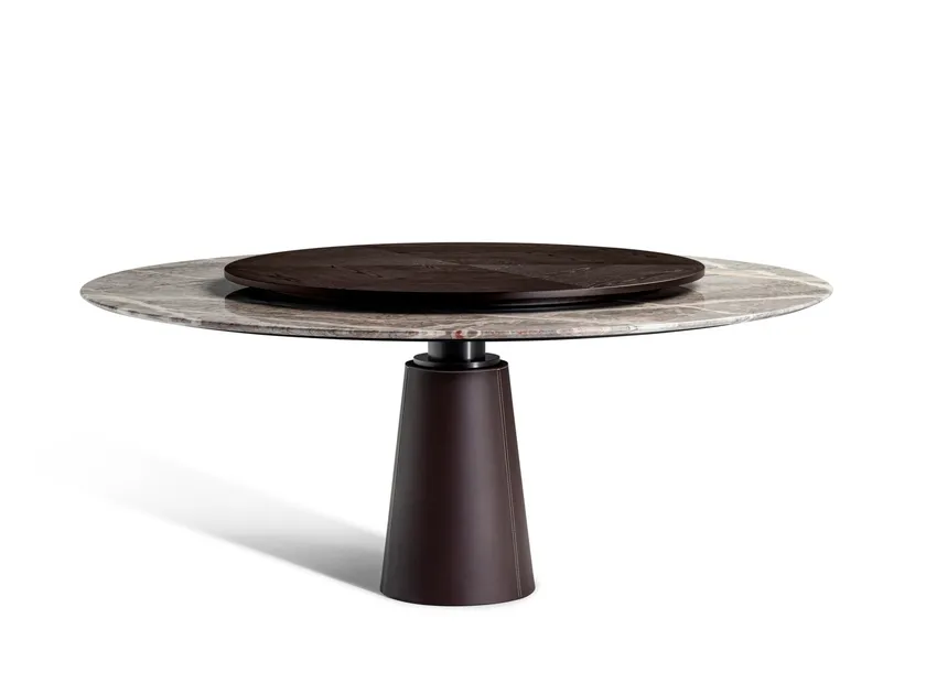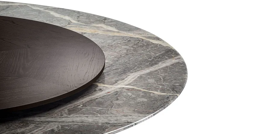 Tavolo da pranzo rotondo in marmo con lazy susan in legno POLTRONA FRAU Mesa Due