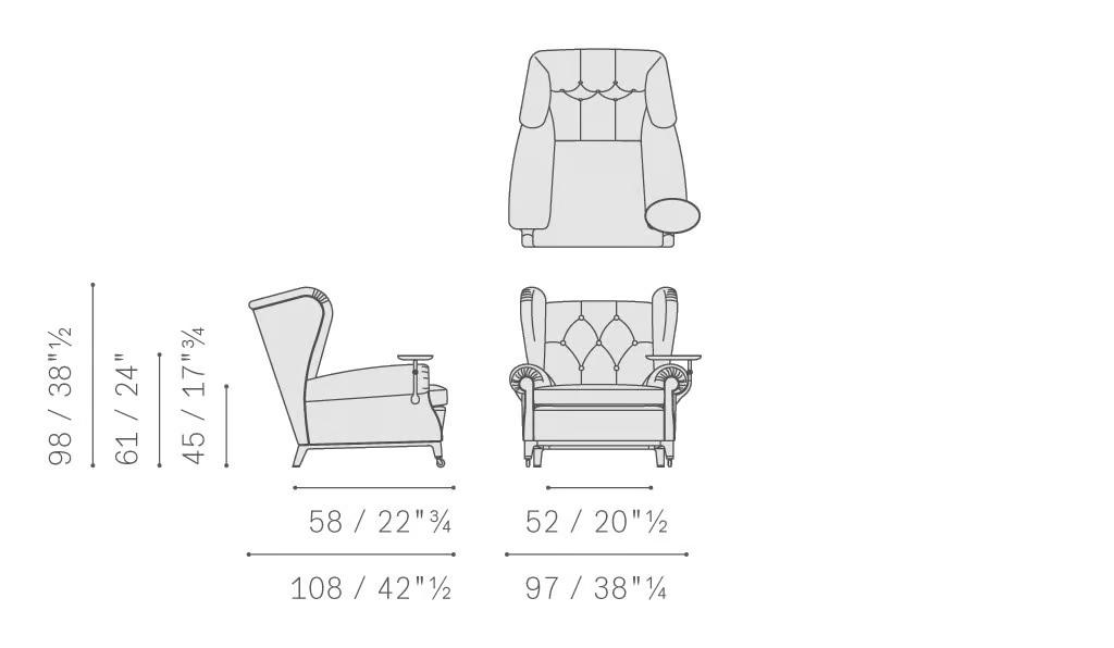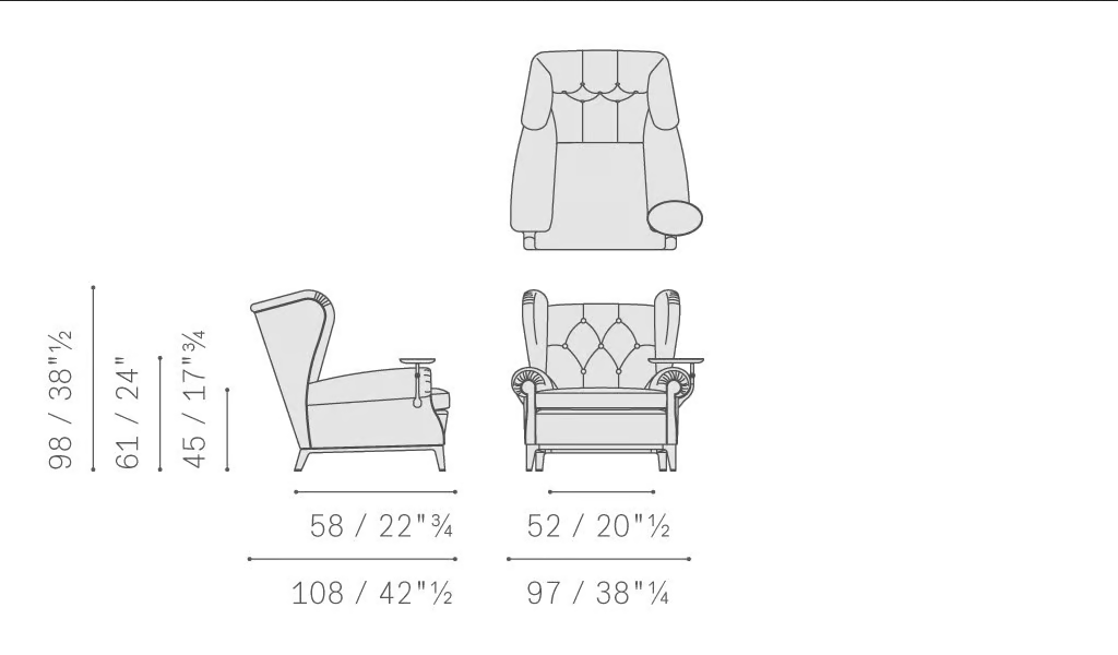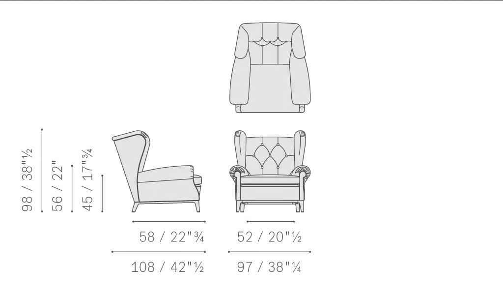 La Poltrona in Pelle Trapuntata è progettata con dimensioni generose per soddisfare gli standard di comfort moderni. Sebbene i dettagli specifici sulle dimensioni possano variare, la poltrona è proporzionata con attenzione per fornire ampio spazio a sedere senza sovraccaricare la stanza. Il suo design versatile le consente di adattarsi perfettamente a una varietà di disposizioni, assicurando che soddisfi le esigenze di clienti diversificati.