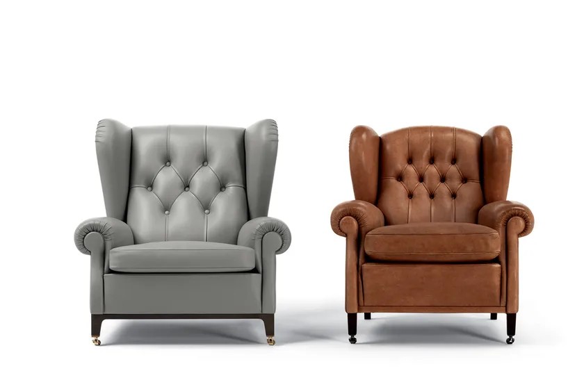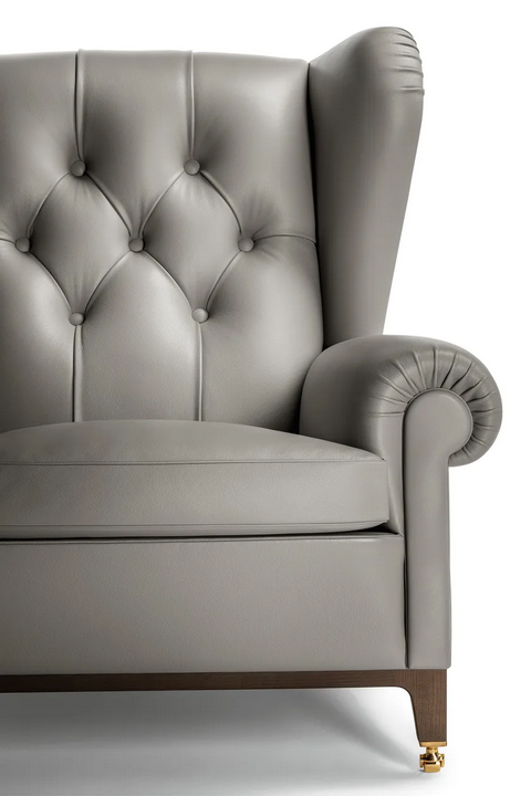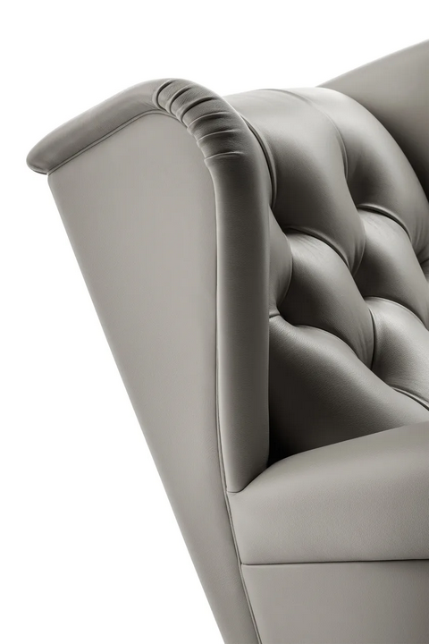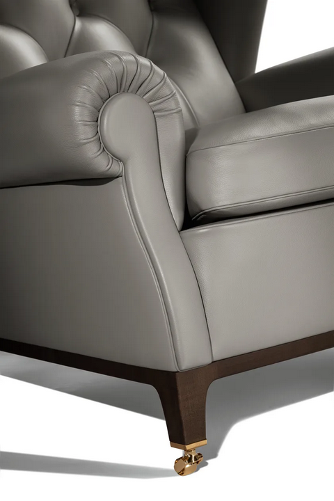 La Poltrona in Pelle Trapuntata presenta linee pulite e una silhouette sofisticata, arricchita da elementi decorativi come lo schienale capitonné e i braccioli plissettati. L'aspetto complessivo della poltrona è di raffinata semplicità, rendendola un'aggiunta elegante a qualsiasi spazio. L'attenzione ai dettagli è evidente in ogni aspetto, dalla scelta dei materiali all'artigianato, assicurando che rimanga un pezzo senza tempo.