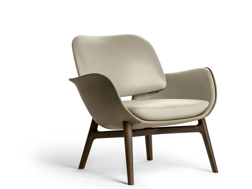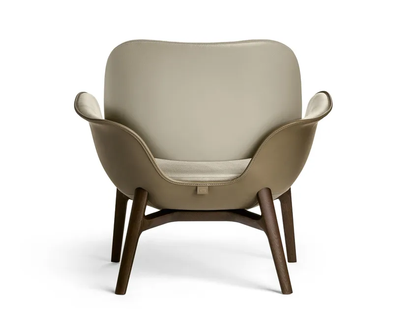 Questa poltrona è realizzata con materiali di alta qualità, tra cui Pelle Extra Saddle per l'esterno e pelle o tessuto Pelle Frau® per l'interno. La struttura è in poliuretano rigido stampato, mentre la base è realizzata in legno di frassino massello, disponibile nelle lussuose finiture Wengé e Moka. Ogni elemento è progettato tenendo presente la sostenibilità ambientale, utilizzando materiali ecologici che soddisfano gli standard di certificazione internazionali, garantendo sia durabilità che appeal estetico.