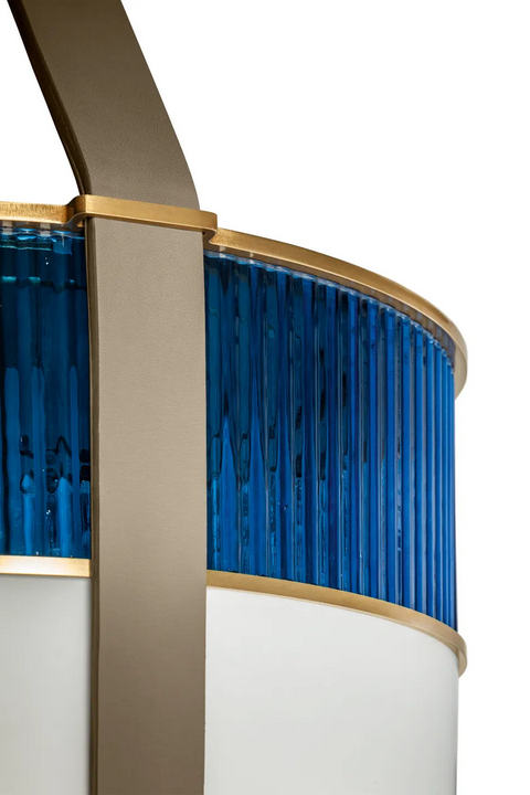 La Lampada da terra integra soluzioni di design innovative, come l'uso di vetro colorato nel corpo e pelle di alta qualità, per creare un'esperienza di illuminazione unica. L'artigianato riflette tecniche moderne che garantiscono sia l'appeal estetico che la funzionalità. I materiali della lampada sono selezionati per la loro bellezza e prestazioni, garantendo longevità.