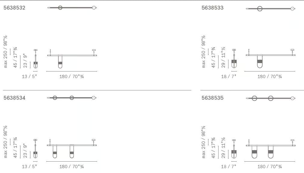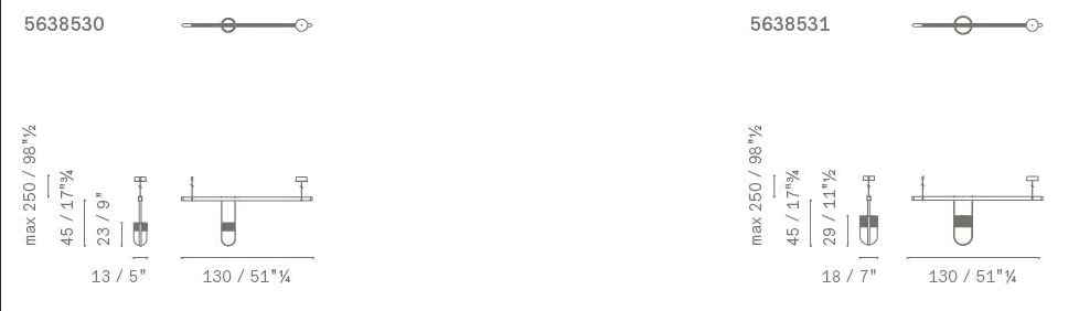 La lampada a sospensione XI è disponibile in due lunghezze, 130 cm e 180 cm, offrendo flessibilità nell'installazione. Queste dimensioni sono attentamente considerate per adattarsi a diverse altezze di soffitto e dimensioni delle stanze, garantendo una vestibilità perfetta in qualsiasi ambiente. La combinazione di caratteristiche regolabili e design elegante la rende una scelta versatile per interni moderni.