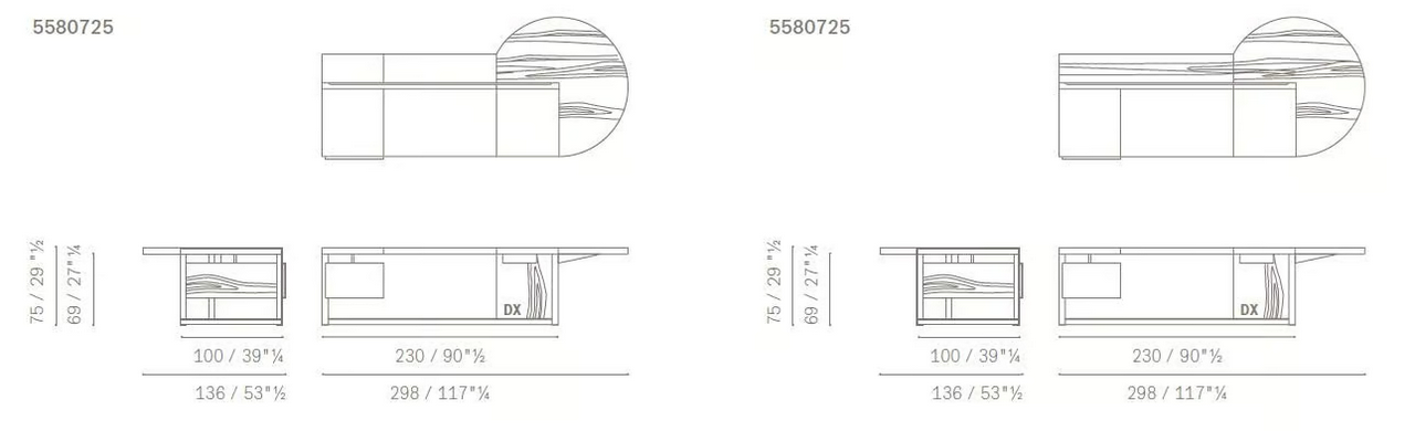 Il design di questa scrivania esecutiva mostra un'attenzione squisita ai dettagli, dalle sue linee eleganti agli elementi decorativi posizionati con attenzione. Il piano in pelle Pelle Frau®, evidenziato da una striscia di Quercia a Piombo o Tabacco, divide l'area di lavoro dall'area ospiti, migliorando la funzionalità della scrivania mantenendo un aspetto rifinito. La porta scorrevole offre un accesso conveniente a un piccolo compartimento per lo stoccaggio, assicurando che gli oggetti essenziali siano a portata di mano senza compromettere l'estetica pulita della scrivania.