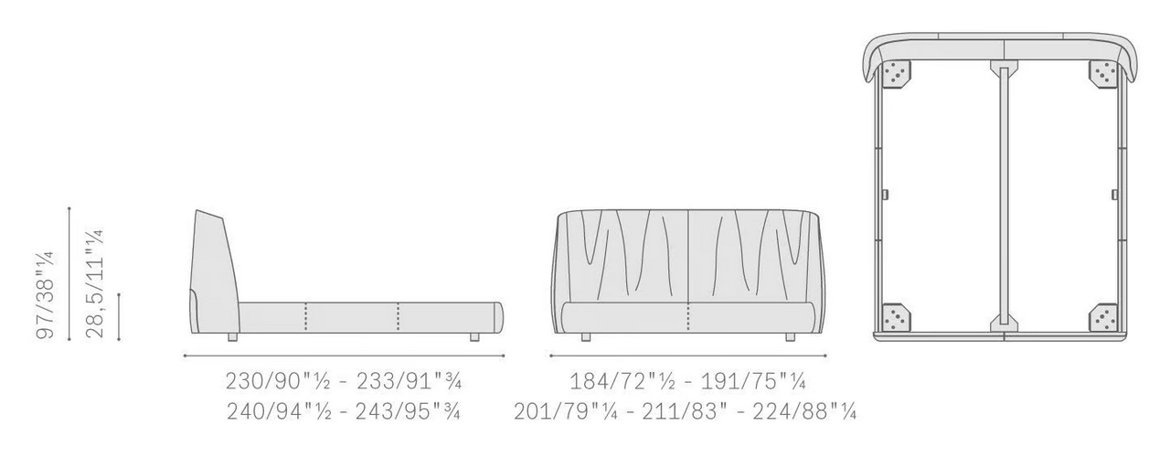 Il letto Archibald è disponibile in diverse dimensioni per adattarsi a diversi layout di camere da letto. Questa flessibilità consente opzioni che vanno dal singolo al king-size, garantendo il massimo comfort per ogni individuo. Ogni dimensione è progettata con attenzione agli standard moderni, rendendolo una scelta versatile per qualsiasi casa.