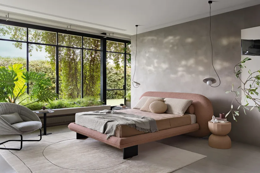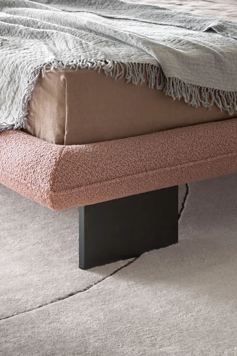 Le curve eleganti e i contorni morbidi del letto WABI mostrano un'eccezionale maestria artigianale. L'attenzione ai dettagli è evidente nella piping decorativa lungo la testiera e la struttura del letto. L'intera silhouette è invitante e sofisticata, rendendola un perfetto punto focale per qualsiasi camera da letto moderna.