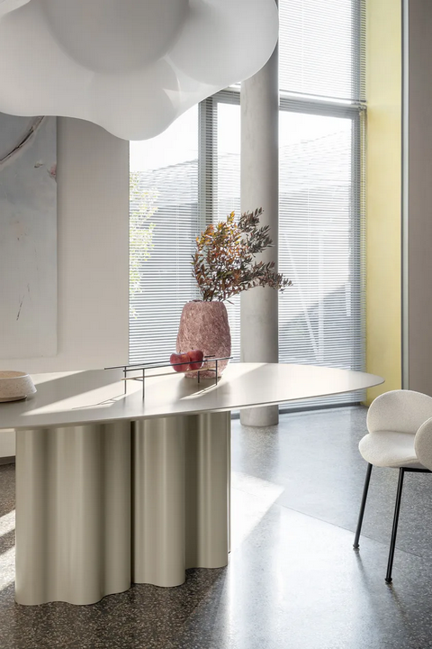 Il Tavolo Ovale Teatro Magico di SABA ITALIA è un centro di attrazione straordinario che combina design artistico con funzionalità pratica. Realizzato dallo studio di architettura rinomato 967 Arch, questo tavolo funge da sfondo versatile per ambienti domestici e contrattuali. La sua base unica in poliuretano riflette l'essenza del patrimonio tessile di Saba, mentre il piano del tavolo offre un'estetica pulita ed essenziale. Il design scultoreo accentua la libertà di composizione, rendendolo una scelta ideale per vari contesti, dalle cene familiari intime ai raduni eleganti.