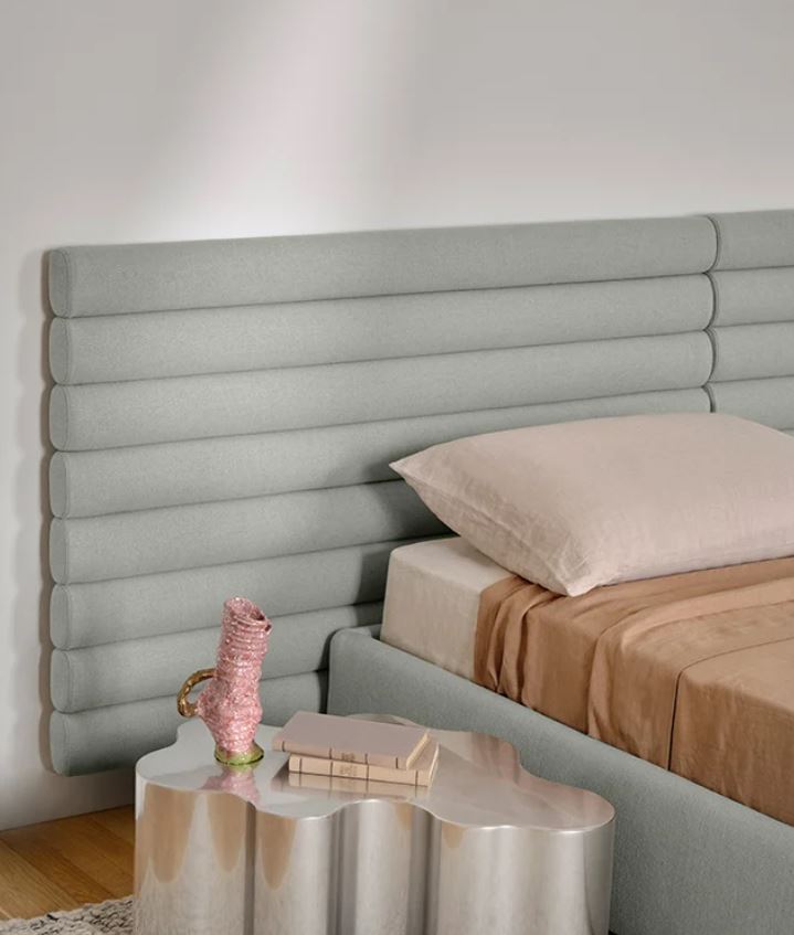 Dal punto di vista del design, la panchina presenta curve eleganti e volumi ben proporzionati, riflettendo attenzione ai dettagli e artigianato. Gli elementi imbottiti ricordano canne musicali, creando una narrativa visiva unica. L'approccio minimalista assicura che la panchina completi vari stili di decorazione pur emergendo come punto focale in qualsiasi spazio.