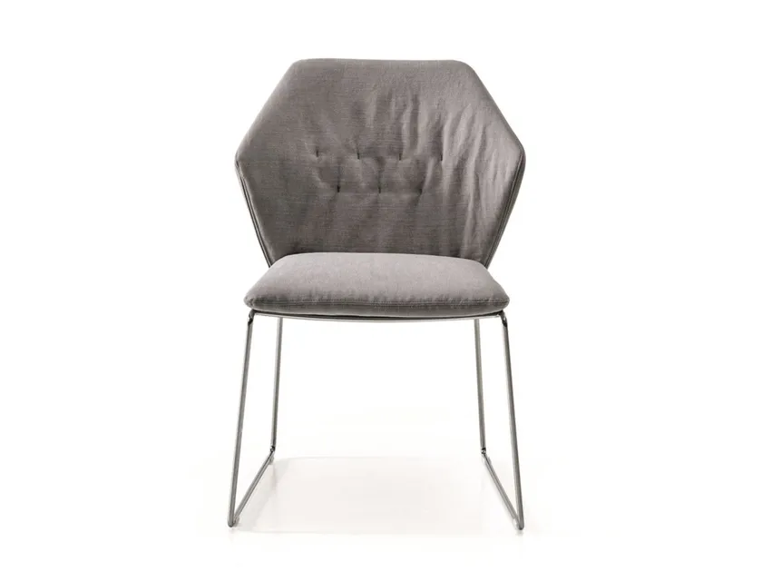 Il design della sedia è caratterizzato dalla sua elegante silhouette e dall'attenzione ai dettagli. La base a slitta fornisce stabilità permettendo al contempo un aspetto visivamente leggero. Elementi decorativi, come l'imbottitura trapuntata tono su tono, aggiungono profondità e texture, migliorando il fascino sofisticato della sedia. L'estetica complessiva è quella di una raffinata semplicità, rendendola un'aggiunta sorprendente a qualsiasi area pranzo.