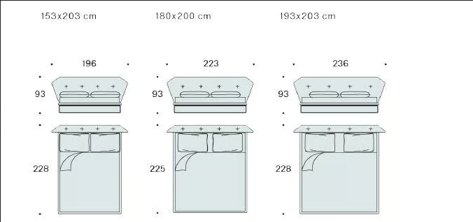 Il letto New York Air è disponibile in diverse dimensioni per adattarsi a diversi layout di stanze e preferenze personali. Le dimensioni standard variano da singole a matrimoniali, garantendo che si integri senza sforzo nel tuo spazio. Ogni dimensione è progettata per fornire il massimo comfort rispettando gli standard contemporanei, rendendolo una scelta perfetta per qualsiasi allestimento della camera da letto.