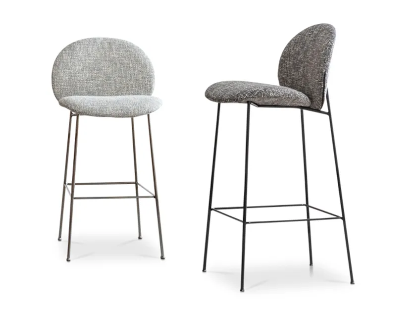 Lo sgabello alto in tessuto con schienale OLA è disponibile in tre opzioni di colore accuratamente selezionate