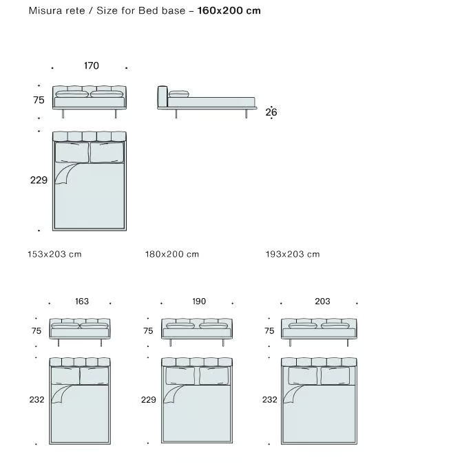 Il letto PIXEL AIR è un pezzo autonomo, progettato per fungere da pezzo centrale nella tua camera da letto. È disponibile in varie configurazioni per soddisfare le diverse esigenze degli spazi abitativi moderni, assicurando che si integri senza sforzo in qualsiasi disposizione della camera da letto.