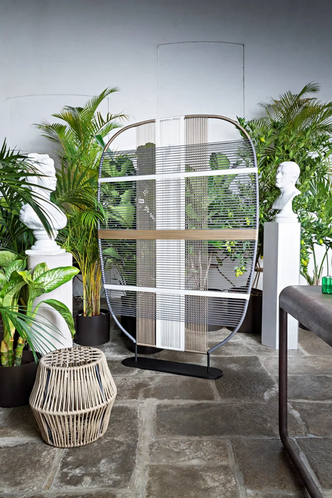 Realizzato in filo rivestito per esterni di alta qualità e corde nautiche in HT poliestere, questo paravento garantisce durata e resistenza agli agenti atmosferici. I materiali sono sia ecologici che sostenibili, conformi agli standard di certificazione internazionali. La finitura tessile aggiunge un tocco di eleganza, rendendolo adatto a interni moderni e contemporanei. Ogni componente è selezionato con cura per garantire longevità mantenendo l'appeal estetico.