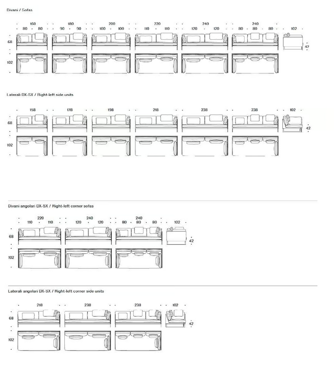 | Misura | Lunghezza (cm): 238 Altezza (cm): 92 Profondita (cm): 102 |