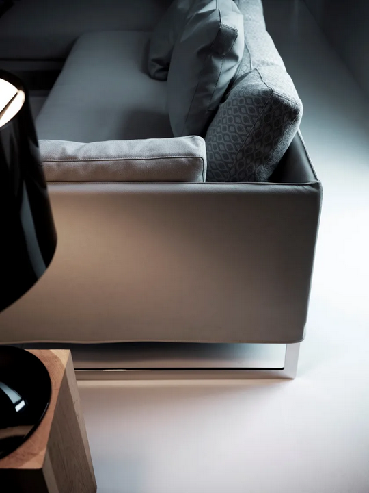 Caratterizzato da uno schienale regolabile unico e cuscini per seduta a lunghezza intera, il divano Livingston mette in mostra un design elegante che enfatizza comfort e stile. Il contrasto dinamico tra la base in acciaio leggero e i cuscini morbidi aggiunge profondità al suo fascino estetico. L'attenzione ai dettagli è evidente nella scelta dei materiali e delle finiture, garantendo un aspetto di alta gamma.