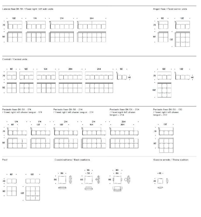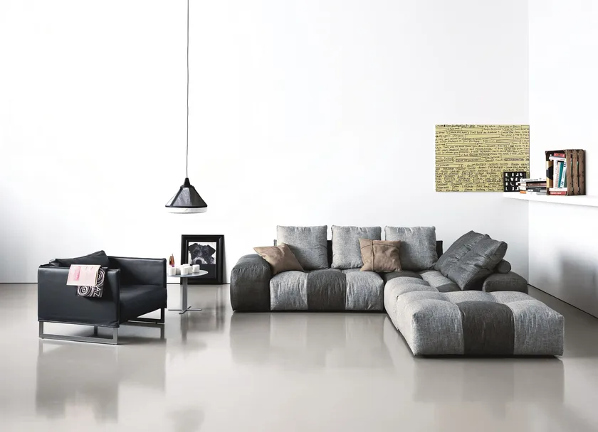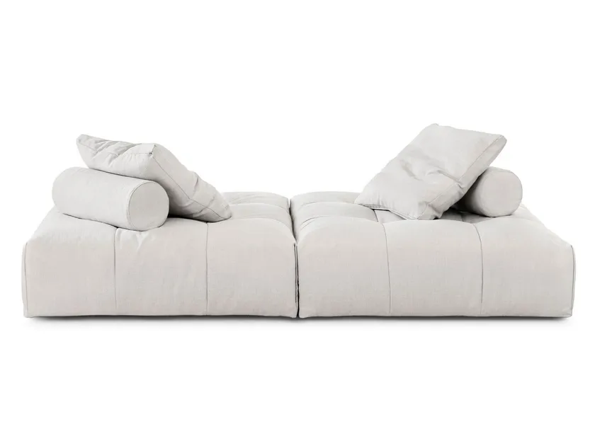 Il divano Pixel è progettato per comfort e convenienza. Presenta una struttura robusta che supporta varie configurazioni mantenendo una dimensione compatta. Il design innovativo include cinghie elastiche rinforzate con polipropilene per un supporto ottimale della seduta. Inoltre, i cuscini dello schienale riempiti con piume d'oca trapuntate offrono una sensazione morbida, migliorando il livello di comfort complessivo.