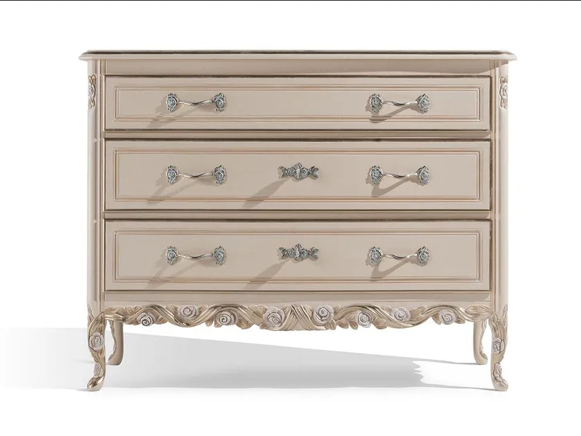 La Cassettiera in Legno Classica 1920 di Savio FIRMINO è un pezzo d'arredo straordinario che combina perfettamente eleganza e funzionalità. Questa cassettiera è progettata per migliorare l'estetica della tua camera da letto classica e di lusso, caratterizzata da un intricato intreccio di nastri e fiori che la distingue dai mobili ordinari. Le sue opzioni personalizzabili ti permettono di adattare il pezzo al tuo stile specifico, assicurando che si integri perfettamente nel tuo arredamento. Con ampio spazio di archiviazione e un design senza tempo, questa cassettiera funge non solo da elemento decorativo, ma anche da soluzione pratica per organizzare i tuoi effetti personali.
