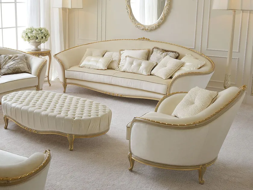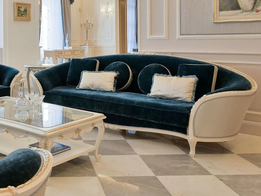 Questo divano incarna uno stile classico che combina la maestria tradizionale con una sensibilità moderna. Il design presenta curve morbide e dettagli intricati, rendendolo un pezzo distintivo in qualsiasi ambiente. L'equilibrio tra eleganza e comfort è evidente in ogni aspetto del design, creando un'atmosfera visivamente gradevole e invitante.