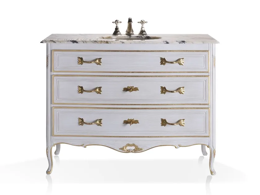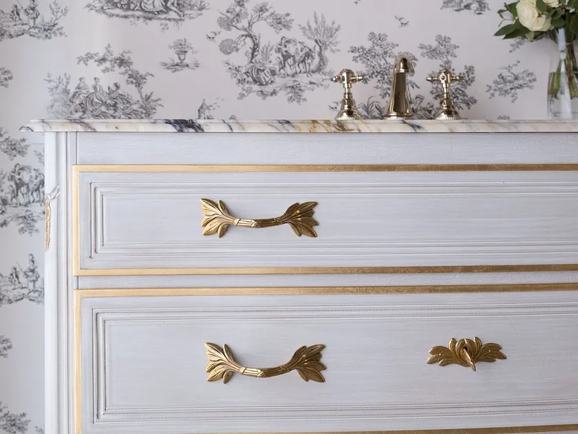 Il mobile bagno presenta un design attento che enfatizza la funzionalità senza compromettere l'estetica. Le linee lisce e affusolate e i cassetti realizzati con maestria offrono sia praticità che eleganza. Elementi decorativi, come il piano e lo schienale in marmo opzionali, aumentano l'appeal visivo dell'unità, mentre l'attenzione ai dettagli nella costruzione mostra la qualità artigianale della Savio Firmino.
