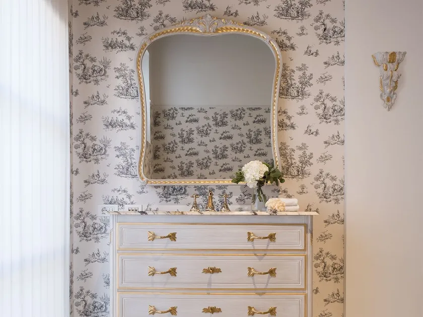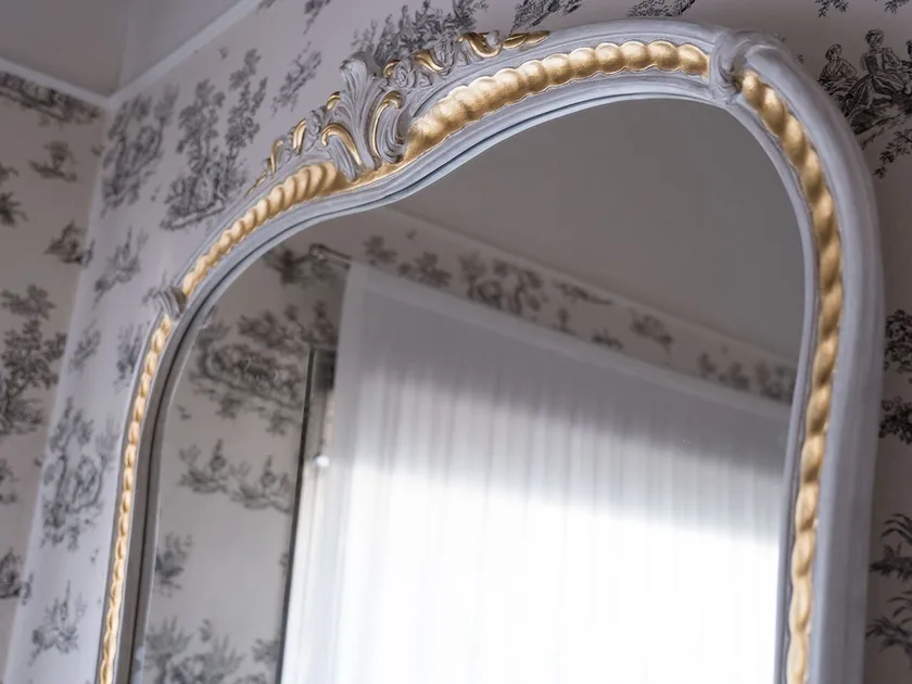 Il design di questo specchio incarna uno stile classico che trascende le tendenze, caratterizzato da linee eleganti e una silhouette raffinata. La sua combinazione unica di elementi tradizionali e contemporanei crea un effetto visivo sorprendente che migliora la decorazione generale di qualsiasi stanza. Questo specchio non è solo un oggetto funzionale; è un pezzo d'affermazione che contribuisce all'estetica del tuo spazio.