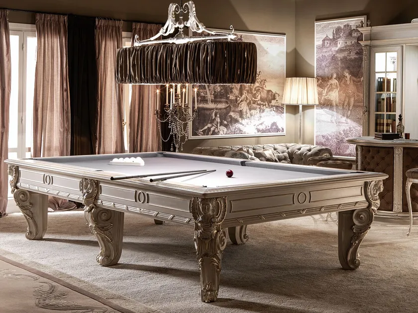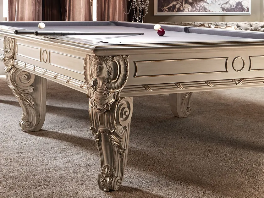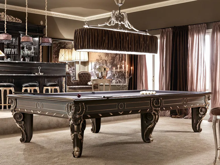 Il tavolo da biliardo in legno 3340 di Savio Firmino è un pezzo artigianale realizzato con maestria che eleva l'arredamento di qualsiasi casa con il suo fascino unico. Realizzato interamente in legno di alta qualità, questo tavolo da biliardo non è solo un accessorio da gioco, ma una dichiarazione di lusso ed eleganza.