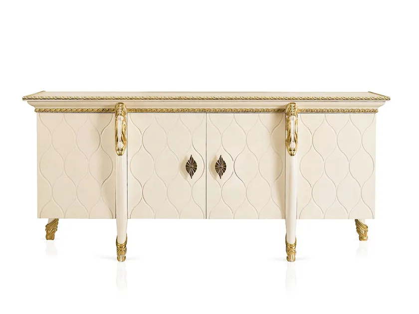Il design del sideboard HARMONY enfatizza l'attenzione ai dettagli, presentando accenti intagliati che elevano il suo fascino estetico. La forma complessiva è elegante e slanciata, mentre gli elementi decorativi aggiungono uno strato di profondità e intrigo. L'uso di finiture di alta qualità garantisce che il sideboard non solo abbia un aspetto straordinario, ma resista anche alla prova del tempo, mantenendo il suo fascino per anni a venire.