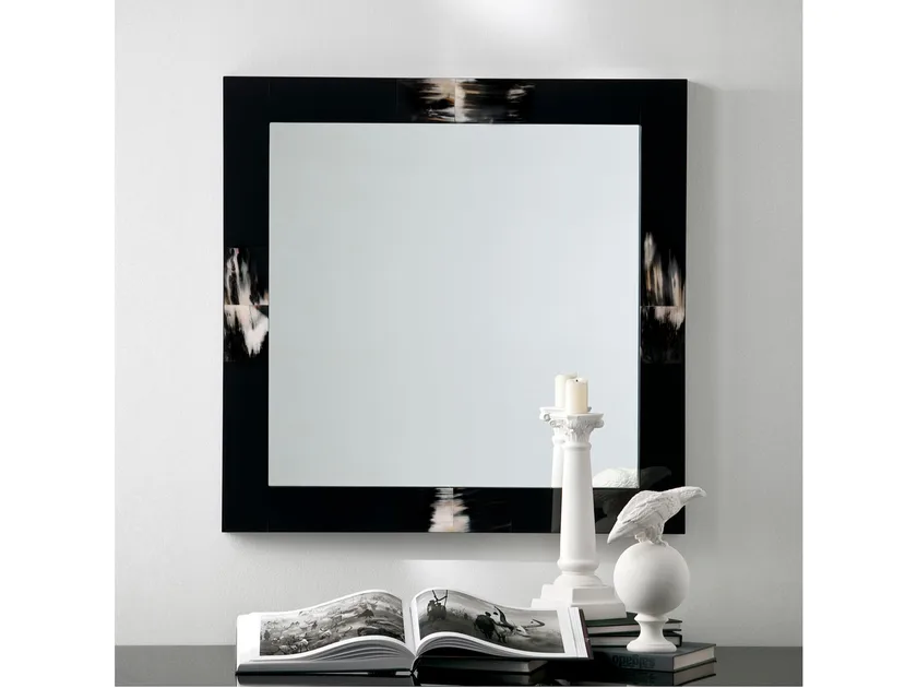 Specchio a muro quadrato in legno con inserimenti in corno Erasmo ARCAHORN 1420